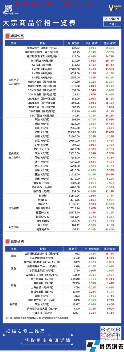 免責聲明:本網(wǎng)站(山東聊城晟杰無縫鋼管廠www.abagaf.com)刊載的“俄烏局勢丨大宗商品價格一覽表(5月23日)”等均源于網(wǎng)絡,版權歸原作者所有,且僅代表原作者觀點,本文所載信息僅供參考。轉載僅為學習與交流之目的,如無意中侵犯您的合法權益,請及時聯(lián)系刪除。本網(wǎng)站刊登此篇文章并不意味著本站贊同其觀點或證實其內容的真實性,我們不對其科學性、嚴肅性等作任何形式的保證。如果侵犯了您的版權,請盡快聯(lián)系我們予以撤銷,謝謝合作!