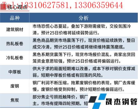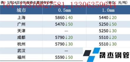 冷軋板卷:5月24日,全國24個主要城市1.0mm冷卷均價5460元/噸,較上個交易日下跌20元/噸。隨著昨日黑色系期貨夜盤震蕩下行,今日現(xiàn)貨市場價格小幅下跌,部分市場報價混亂;據(jù)悉,當前上海倉庫基本上都可以加工和提貨,臨近訂貨時期,商家出貨回籠資金意愿較強。綜合來看,預計25日國內(nèi)冷軋板卷現(xiàn)貨價格或?qū)⑵踹\行。