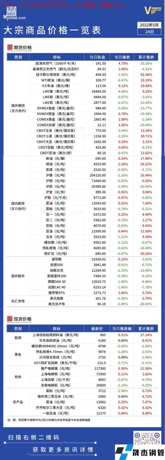 免責(zé)聲明:本網(wǎng)站(山東聊城晟杰無縫鋼管廠www.abagaf.com)刊載的“俄烏局勢丨大宗商品價格一覽表(5月24日)”等均源于網(wǎng)絡(luò),版權(quán)歸原作者所有,且僅代表原作者觀點,本文所載信息僅供參考。轉(zhuǎn)載僅為學(xué)習(xí)與交流之目的,如無意中侵犯您的合法權(quán)益,請及時聯(lián)系刪除。本網(wǎng)站刊登此篇文章并不意味著本站贊同其觀點或證實其內(nèi)容的真實性,我們不對其科學(xué)性、嚴(yán)肅性等作任何形式的保證。如果侵犯了您的版權(quán),請盡快聯(lián)系我們予以撤銷,謝謝合作!