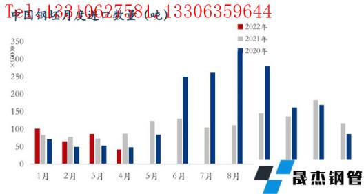 2022年4月,中國進口鋼坯數(shù)量41.2萬噸,1-4月合計進口292.4萬噸。今年4月中國鋼坯進口數(shù)量環(huán)比下降52.1%,同比下降8.9%。