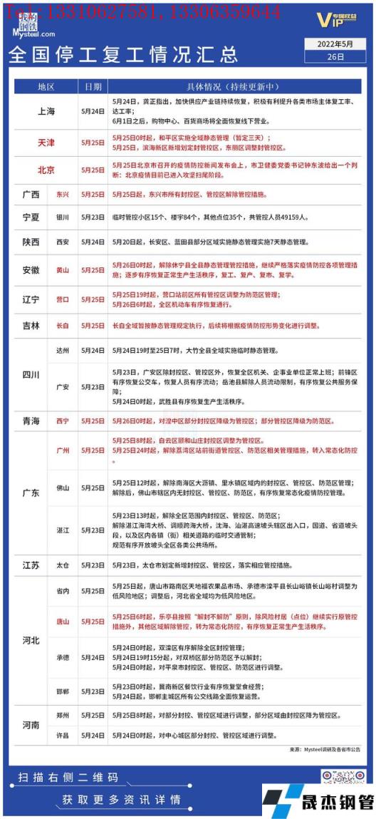 免責(zé)聲明:本網(wǎng)站(山東聊城晟杰無縫鋼管廠www.abagaf.com)刊載的“疫情影響丨全國停工復(fù)工情況匯總(5月26日)”等均源于網(wǎng)絡(luò),版權(quán)歸原作者所有,且僅代表原作者觀點(diǎn),本文所載信息僅供參考。轉(zhuǎn)載僅為學(xué)習(xí)與交流之目的,如無意中侵犯您的合法權(quán)益,請及時聯(lián)系刪除。本網(wǎng)站刊登此篇文章并不意味著本站贊同其觀點(diǎn)或證實(shí)其內(nèi)容的真實(shí)性,我們不對其科學(xué)性、嚴(yán)肅性等作任何形式的保證。如果侵犯了您的版權(quán),請盡快聯(lián)系我們予以撤銷,謝謝合作!