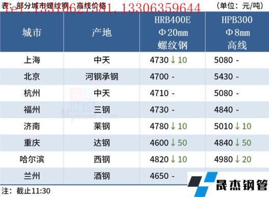◎上海:26日早盤建材市場價格部分資源小幅下調10?,F螺紋4660-4700,西城抗震4700,其他4530-4580,興鑫抗震4590,聯鑫黃??拐?600,盤螺4900-5090,高線亞新4840。(單位:元/噸)