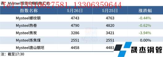 ◎5月26日,統(tǒng)計新口徑114家無縫厚壁鋼管廠家進(jìn)口燒結(jié)粉總庫存3246.02萬噸,燒結(jié)粉總?cè)蘸?14.19萬噸,114家無縫厚壁鋼管廠家不含稅鐵水成本3482元/噸。原口徑64家無縫厚壁鋼管廠家進(jìn)口燒結(jié)粉總庫存1604.50萬噸,燒結(jié)粉總?cè)蘸?4.40萬噸,庫存消費比29.49,燒結(jié)礦中平均使用進(jìn)口礦配比85.81%,無縫厚壁鋼管廠家不含稅平均鐵水成本3257元/噸。詳情>>