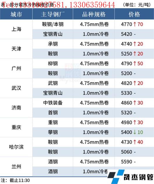 ◎天津:27日早盤冷軋市場價格上調(diào)20元/噸,1.0天鐵5260元/噸;首鋼5250元/噸,唐鋼5220元/噸,成交一般。(單位:元/噸)