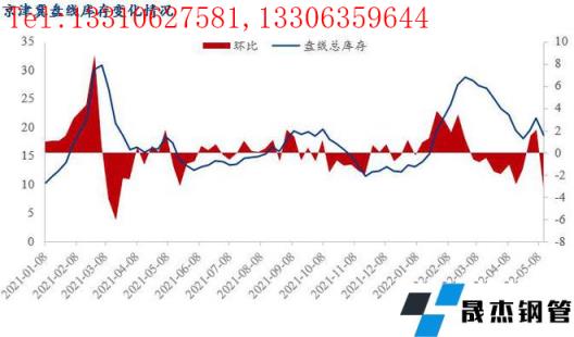 解析:本周京津冀主要建筑厚壁無縫鋼管市場螺紋庫存增加8.65萬噸,盤線庫存增加2.74萬噸,其中北京市場螺紋庫存增加3.39萬噸,盤線庫存增加1.38萬噸。本周京津冀無縫厚壁鋼管廠家產量37.51萬噸,周環(huán)比增加7.2%,主要是承鋼、敬業(yè)的鐵水不足,本周鐵水略向板材轉移,螺紋鋼產量略有減少。不過東北的凌鋼、西林、新?lián)嵋约熬┙蚣絽^(qū)域的敬業(yè)無縫厚壁鋼管廠家對北京、天津市場發(fā)貨情況尚可,加之需求端受疫情沖擊,有所下滑,因此在供應尚可、需求減少的情況下,市場庫存明顯增加。從品種上看,本周線盤的庫存占比略有上升,為16.78%。各城市來看,目前邯鄲、承德市場盤線庫存偏高,在28%以上;其他市場盤線庫存占比基本位于合理區(qū)間,不過周邊市場盤螺價格相對低位,周邊無縫厚壁鋼管廠家向京津冀發(fā)貨的意愿較強,盤螺與螺紋鋼價差或有所擴大,特別是不同無縫厚壁鋼管廠家間的盤螺價差或拉大