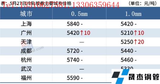 冷軋板卷:5月27日,全國(guó)24個(gè)主要城市1.0mm冷卷均價(jià)5425元/噸,較上個(gè)交易日上漲1元/噸。黑色系期貨盤(pán)面止跌反彈,市場(chǎng)信心稍有提振,釋放部分投機(jī)需求,多數(shù)商家以出貨回籠資金操作為主,成交稍有好轉(zhuǎn)。據(jù)商家反饋,當(dāng)前下游制造業(yè)都在緩慢復(fù)蘇狀態(tài),其接單一般,采購(gòu)心態(tài)也較為謹(jǐn)慎,未見(jiàn)大規(guī)模補(bǔ)庫(kù)采購(gòu)的跡象。就下周市場(chǎng)而言,臨近月底,考慮到市場(chǎng)商家資金和庫(kù)存壓力均較大,預(yù)計(jì)下周全國(guó)市場(chǎng)冷軋板卷價(jià)格或?qū)⒄鹗庍\(yùn)行。