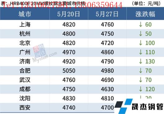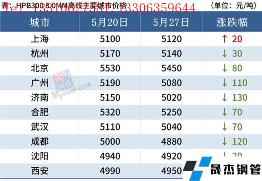 據(jù)監(jiān)測(cè),截至5月27日,全國(guó)主要城市20mm三級(jí)抗震螺紋鋼均價(jià)4765元/噸,較5月20日下跌84元/噸;8.0mmHPB300高線均價(jià)5023/噸,較5月20日下跌78元/噸。