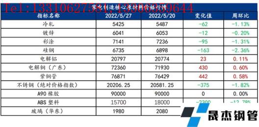 免責(zé)聲明:本網(wǎng)站(山東聊城晟杰無縫鋼管廠www.abagaf.com)刊載的“家電原材料周報(bào)(5.23-5.27)”等均源于網(wǎng)絡(luò),版權(quán)歸原作者所有,且僅代表原作者觀點(diǎn),本文所載信息僅供參考。轉(zhuǎn)載僅為學(xué)習(xí)與交流之目的,如無意中侵犯您的合法權(quán)益,請及時(shí)聯(lián)系刪除。本網(wǎng)站刊登此篇文章并不意味著本站贊同其觀點(diǎn)或證實(shí)其內(nèi)容的真實(shí)性,我們不對其科學(xué)性、嚴(yán)肅性等作任何形式的保證。如果侵犯了您的版權(quán),請盡快聯(lián)系我們予以撤銷,謝謝合作!