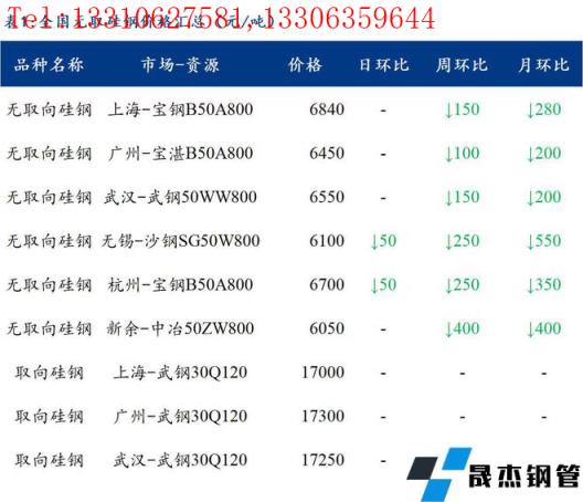 2022年5月30日湖南浙湘新材料科技有限公司出臺(tái)無(wú)取向硅鋼價(jià)格政策:0.5mm*1200mm*C規(guī)格材質(zhì)50W600無(wú)縫厚壁鋼管廠家指導(dǎo)價(jià)6420元/噸;50W800指導(dǎo)價(jià)6250元/噸;50W1300指導(dǎo)價(jià)6200元/噸,較上期持穩(wěn)。