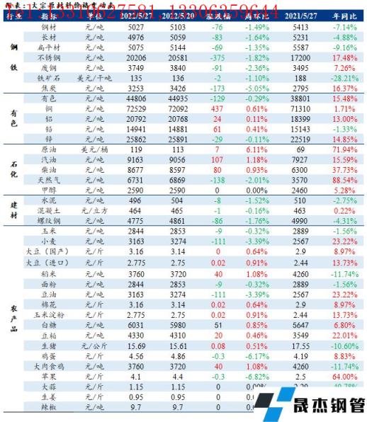 免責(zé)聲明:本網(wǎng)站(山東聊城晟杰無縫鋼管廠www.abagaf.com)刊載的“周報:大宗工業(yè)原材料、能源及農(nóng)產(chǎn)品價格周報(5.23-5.27)”等均源于網(wǎng)絡(luò),版權(quán)歸原作者所有,且僅代表原作者觀點,本文所載信息僅供參考。轉(zhuǎn)載僅為學(xué)習(xí)與交流之目的,如無意中侵犯您的合法權(quán)益,請及時聯(lián)系刪除。本網(wǎng)站刊登此篇文章并不意味著本站贊同其觀點或證實其內(nèi)容的真實性,我們不對其科學(xué)性、嚴(yán)肅性等作任何形式的保證。如果侵犯了您的版權(quán),請盡快聯(lián)系我們予以撤銷,謝謝合作!