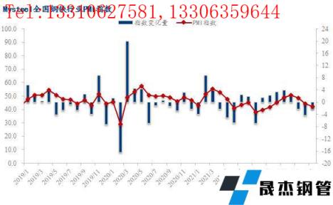 2022年5月份全國鋼鐵行業(yè)PMI為42.0%,環(huán)比回落2.3個百分點,連續(xù)三個月低于榮枯線。分指標來看,本月新訂單、新出口訂單、積壓訂單、出廠價格、原料采購價指數(shù)均大幅回落,僅產出、原材料庫存指數(shù)小幅回升,但仍處于榮枯線下方,顯示了5月份國內鋼鐵行業(yè)呈現(xiàn)供需兩弱的低迷態(tài)勢運行。具體來看,5月份國內疫情仍呈多點散發(fā)態(tài)勢,繼續(xù)拖累終端需求釋放,同時宏觀經濟數(shù)據(jù)顯示投資消費信心不足、國內經濟面臨較大下行壓力,導致市場悲觀情緒蔓延,國內厚壁無縫鋼管價格持續(xù)下行,無縫厚壁鋼管廠家生產盈利快速收窄,尤其是短流程無縫厚壁鋼管廠家面臨全線虧損,無縫厚壁鋼管廠家供給釋放受到抑制。面對即將到來的6月份,國內鋼價能否止跌企穩(wěn),下面筆者從PMI各項指數(shù)進行分析解讀。