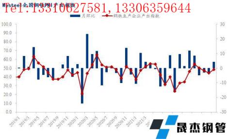 5月份,全國鋼鐵行業(yè)無縫厚壁鋼管廠家產出指數(shù)較4月份小幅回升4.2個百分點,終值48.6。具體來看,上半月隨著部分區(qū)域高爐檢修結束陸續(xù)復產,粗鋼產量整體回升,但后半月成材價格持續(xù)下行,導致無縫厚壁鋼管廠家生產盈利大幅收縮,尤其是短流程企業(yè)已全線虧損,部分無縫厚壁鋼管廠家主動停減產,成材產量隨之下行。