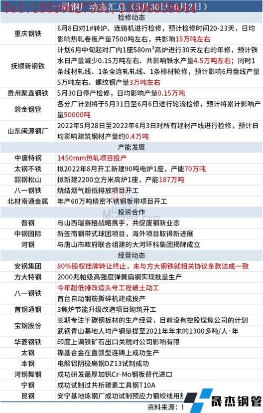 據(jù)不完全統(tǒng)計(jì),本周(5月30日-6月2日)有5家無縫厚壁鋼管廠家發(fā)布檢修計(jì)劃,具體如下: