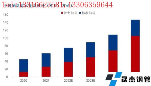 萬(wàn)噸,儲(chǔ)能類(lèi)鋰電池用銅箔量約為3萬(wàn)噸。2021年鋰電銅箔總需求為26萬(wàn)噸,較2020年翻一番。
