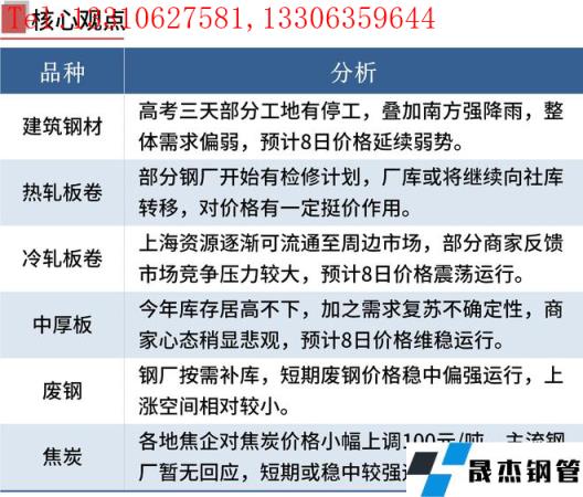 建筑厚壁無縫鋼管:6月7日,全國31個主要城市20mm三級抗震螺紋鋼均價4839元/噸,較上個交易日下跌15元/噸。高考三天,部分工地有停工,道路有封鎖,需求整體偏弱。疊加南方地區(qū)降雨天氣影響,整體需求仍然偏弱,因此預(yù)計(jì)8日國內(nèi)建筑厚壁無縫鋼管價格或?qū)⒀永m(xù)弱勢運(yùn)行態(tài)勢。