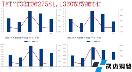 家用空調(diào)紫銅管用量5.48萬噸,環(huán)比下降25.90%,家用空調(diào)黃銅用銅量3.02萬噸,環(huán)比下降32.75%;商用紫銅管用量2.74萬噸,環(huán)比下降24.30%,商用黃銅用銅量0.79萬噸,環(huán)比下降13.22%。