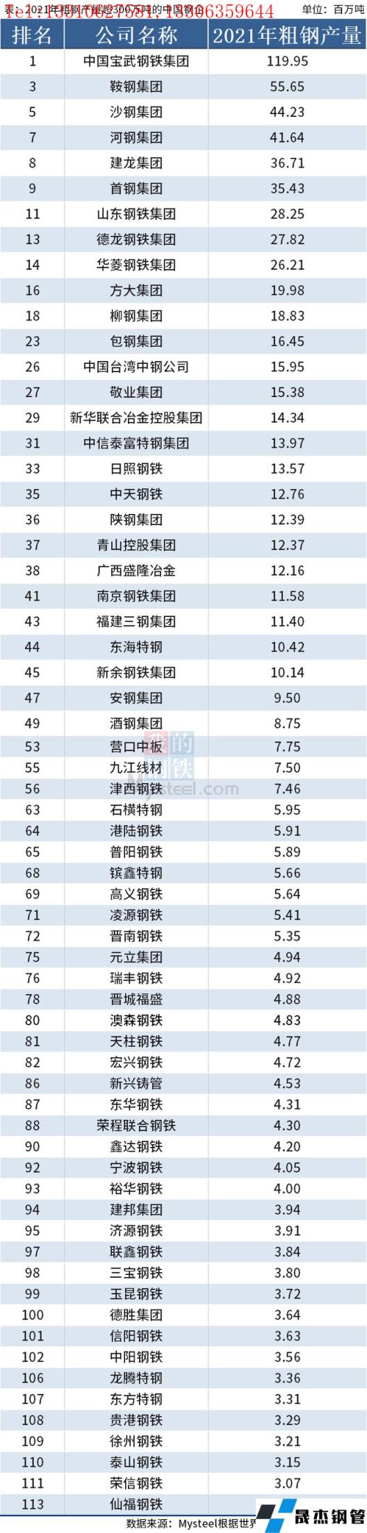 免責(zé)聲明:本網(wǎng)站(山東聊城晟杰無(wú)縫鋼管廠www.abagaf.com)刊載的“2021年中國(guó)64家重點(diǎn)鋼企粗鋼產(chǎn)量排名”等均源于網(wǎng)絡(luò),版權(quán)歸原作者所有,且僅代表原作者觀點(diǎn),本文所載信息僅供參考。轉(zhuǎn)載僅為學(xué)習(xí)與交流之目的,如無(wú)意中侵犯您的合法權(quán)益,請(qǐng)及時(shí)聯(lián)系刪除。本網(wǎng)站刊登此篇文章并不意味著本站贊同其觀點(diǎn)或證實(shí)其內(nèi)容的真實(shí)性,我們不對(duì)其科學(xué)性、嚴(yán)肅性等作任何形式的保證。如果侵犯了您的版權(quán),請(qǐng)盡快聯(lián)系我們予以撤銷,謝謝合作!