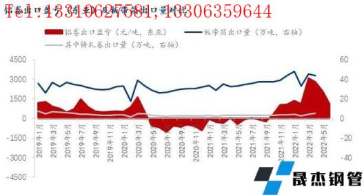 而在板帶箔出口方面,我們從下圖數(shù)據(jù)可以看到,在鋁卷出口利潤為負(fù)的時候,板帶箔仍維持較高水平的出口量。