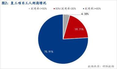 3、復(fù)工項(xiàng)目中,75.91%員工到崗率高于80%,82.35%施工進(jìn)度恢復(fù)正常,其中18.07%有趕工需求;