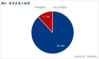 2、截至8日,共有137個(gè)項(xiàng)目復(fù)工,樣本項(xiàng)目中整體復(fù)工率44.92%;