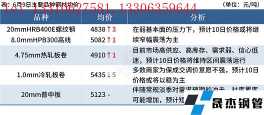 ◎6月8日,統(tǒng)計(jì)40家獨(dú)立電弧爐建筑厚壁無(wú)縫鋼管無(wú)縫厚壁鋼管廠家平均成本為4894元/噸,環(huán)比上周上升57元/噸。平均利潤(rùn)虧損103元/噸,谷電利潤(rùn)為2元/噸,虧損環(huán)比上周擴(kuò)大11元/噸。