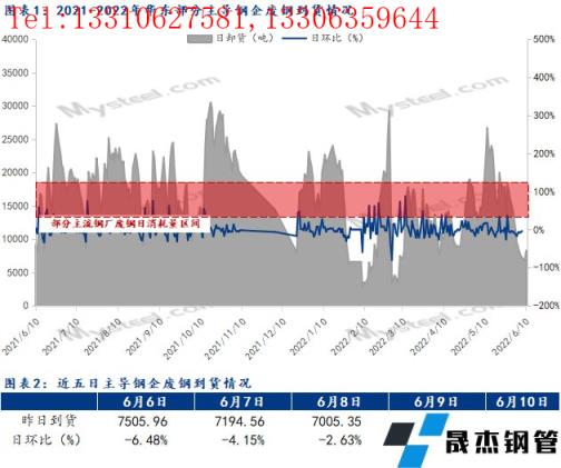截止發(fā)稿,6月10日統(tǒng)計華東主導(dǎo)鋼企廢鋼到貨昨卸8304.23噸,較前一日增加19.39%。日均到貨普遍低于日耗。結(jié)合上述消耗情況,可見多數(shù)無縫厚壁鋼管廠家暫未受此消息影響而計劃降低庫存,反而部分無縫厚壁鋼管廠家?guī)齑嫫停醒a庫需求。