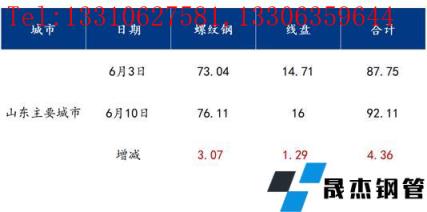 本周山東市場主要城市螺紋鋼社會庫存76.11萬噸,較上周增加3.07萬噸;盤螺社會庫存16萬噸,較上周增加1.29萬噸;總庫存92.11萬噸,增加4.36萬噸。