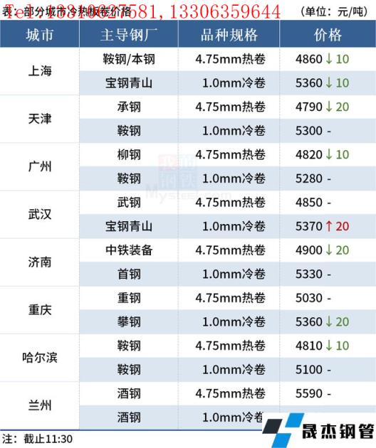 ◎武漢:10日早盤(pán)冷軋市場(chǎng)價(jià)格上漲20-30,1.0寶鋼青山卷5370,1.5卷5290,3.0卷5720。(單位:元/噸)