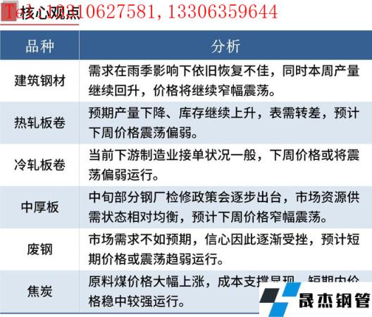 建筑厚壁無縫鋼管:6月10日,全國(guó)31個(gè)主要城市20mm三級(jí)抗震螺紋鋼均價(jià)4821元/噸,較上個(gè)交易日下跌17元/噸。短期來看,目前市場(chǎng)需求在雨季影響下依舊恢復(fù)不佳,同時(shí)本周產(chǎn)量繼續(xù)回升,高爐產(chǎn)能維持,供需仍然呈現(xiàn)雙弱格局。因此在下游需求難以回暖的狀態(tài)下,預(yù)計(jì)下周國(guó)內(nèi)建筑厚壁無縫鋼管價(jià)格或?qū)⒗^續(xù)窄幅震蕩為主。