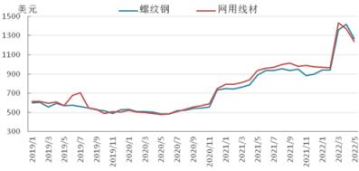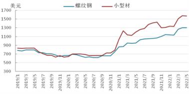 圖6 2019-2022年亞洲螺紋鋼價(jià)格走勢(shì)圖