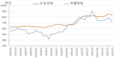 圖5 2019-2022年亞洲扁平材市場(chǎng)價(jià)格走勢(shì)圖