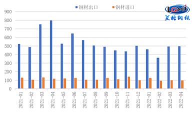 進(jìn)口方面,由于國內(nèi)疫情對經(jīng)濟(jì)的沖擊超出預(yù)期,無縫鋼管 厚壁鋼管需求較弱,且海外市場價格偏高,進(jìn)口仍呈下降態(tài)勢。4月份,我國進(jìn)口無縫鋼管 厚壁鋼管95.6萬噸,環(huán)比下降5.4%,同比下降18.6%;1-4月累計進(jìn)口無縫鋼管 厚壁鋼管417.4萬噸,同比下降14.7%。