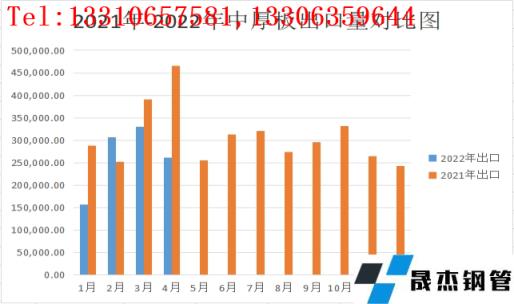 中板產(chǎn)品進(jìn)口方面,據(jù)不完全統(tǒng)計(jì),2022年4月份國(guó)內(nèi)中板進(jìn)口量約為14.94萬(wàn)噸,環(huán)比3月份進(jìn)口量小幅增加約1.05萬(wàn)余噸,與2021年同期相比進(jìn)口量下降約4.06萬(wàn)噸左右,由下圖可見,中厚板資源進(jìn)口量呈現(xiàn)逐月遞增態(tài)勢(shì),但叫往年同期相比,進(jìn)口量偏低位。