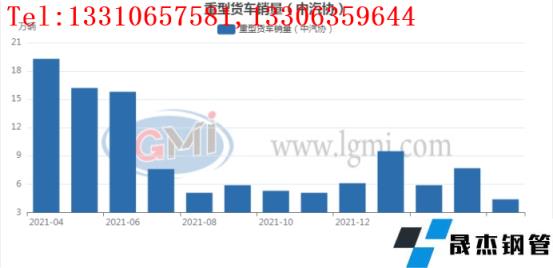 4月份國(guó)內(nèi)重型貨車銷量為4.4萬(wàn)輛,環(huán)比3月份減少3.3萬(wàn)輛。同比21年同期減少約14.9萬(wàn)輛。