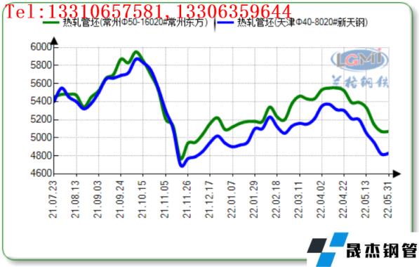 圖2 2021-2022年南北方樣本無縫無縫鋼管廠家20#熱軋管坯價(jià)格走勢圖