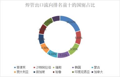 圖二我國(guó)焊管出口前十名國(guó)家占比