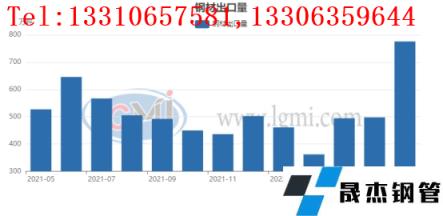 圖三2021年—2022年我國(guó)厚壁鋼管出口走勢(shì)圖