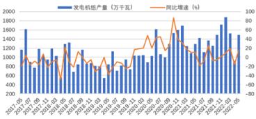 圖4 2017-2022年分月度發(fā)電機(jī)組產(chǎn)量及增長情況