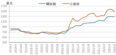 美國(guó)長(zhǎng)材價(jià)格小幅下跌。6月底,美國(guó)中西部無縫鋼管廠家螺紋鋼價(jià)格下跌10美元至1290美元,進(jìn)口螺紋鋼價(jià)格下跌175美元至1075美元;中西部無縫鋼管廠家小型材價(jià)格下跌95美元至1475美元,進(jìn)口小型材價(jià)格下跌70美元至1360美元。美聯(lián)儲(chǔ)持續(xù)加息,利率的快速上調(diào)增加購房者負(fù)擔(dān),將對(duì)房地產(chǎn)市場(chǎng)形成壓制,影響厚壁鋼管需求。紐柯厚壁無縫鋼管于6月14日宣布將線材價(jià)格下調(diào)40美元/短噸,美國(guó)厚壁無縫鋼管公司Optimus Steel宣布自7月1日起其線材價(jià)格下調(diào)40美元/短噸。綜合來看,7月份北美市場(chǎng)長(zhǎng)材價(jià)格或延續(xù)震蕩調(diào)整走勢(shì)。