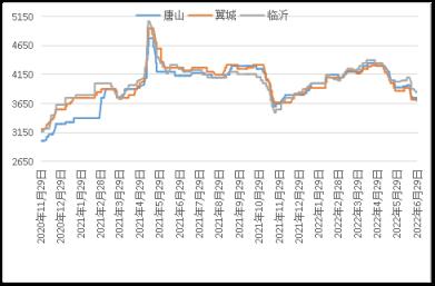 據云商平臺監(jiān)測數據顯示,截至6月30日,煉鋼生鐵天津地區(qū)報價3670元(噸價,下同),較月初跌240元;唐山地區(qū)報價3700元,較月初跌230元;翼城地區(qū)報價3720元,較月初跌150元;臨沂地區(qū)報價3850元,較月初跌180元(詳見圖2)。