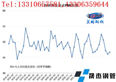 云商平臺統(tǒng)計發(fā)布的2022年7月份厚壁無縫鋼管流通業(yè)PMI總指數(shù)為46.7%,比上月回升0.6個百分點,在收縮區(qū)間內(nèi)低位回升。從分類指數(shù)看,構(gòu)成厚壁無縫鋼管流通業(yè)
