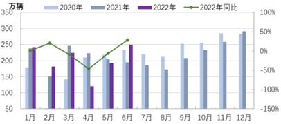 上半年疫情產(chǎn)生階段性沖擊,但乘用車仍保持了增長態(tài)勢,產(chǎn)銷分別完成1043.4萬輛和1035.5萬輛,同比增長6.0%和3.4%。尤其6月份乘用車產(chǎn)銷分別完成223.9萬輛和222.2萬輛,同比增長43.6%和41.2%,產(chǎn)銷形勢好于預期。