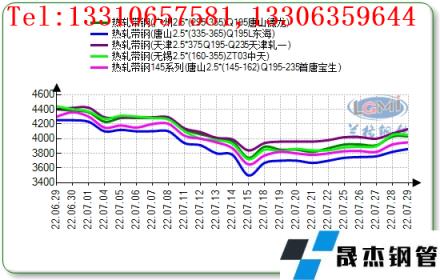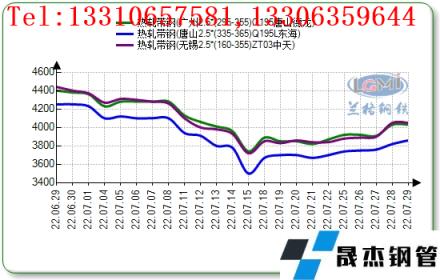 七月份國(guó)內(nèi)帶鋼市場(chǎng)呈現(xiàn)震蕩下行趨勢(shì)。月初帶鋼市場(chǎng)價(jià)格整體趨弱運(yùn)行,低價(jià)資源成交尚可,期貨市場(chǎng)寬幅震蕩,終端逢低補(bǔ)庫(kù),高價(jià)成交疲軟。月中市場(chǎng)價(jià)格持續(xù)下行,整體成交偏弱,淡季效應(yīng)顯現(xiàn)導(dǎo)致市場(chǎng)價(jià)格大幅走低,下游商貿(mào)情緒觀望為主。北方地區(qū)小窄帶方面,月末隨期貨震蕩走高,倒掛情況稍有緩解,為維持訂單及正常運(yùn)轉(zhuǎn),被動(dòng)維持生產(chǎn)。7月帶鋼庫(kù)存持續(xù)小幅下降,無(wú)縫鋼管廠家產(chǎn)量也有所下降,需求端仍未得到改善。南方地區(qū)因疫情反復(fù),加之目前正處于傳統(tǒng)淡季,商貿(mào)多以觀望為主,隨期貨盤整運(yùn)行,市場(chǎng)商貿(mào)心態(tài)不穩(wěn),多以降庫(kù)為主,終端下游市場(chǎng)仍不景氣,觀望態(tài)度濃厚,實(shí)際需求延續(xù)偏弱,加之下游開工維持低位,帶鋼底部支撐不足。截止至7月29日,華北地區(qū)唐山小窄帶報(bào)價(jià)主流為3950元/噸,唐山355系窄帶鋼主流報(bào)價(jià)為3860元/噸,天津355系窄帶主流報(bào)價(jià)為4130元/噸,華東地區(qū)無(wú)錫355系窄帶主流報(bào)價(jià)為4050元/噸,華南地區(qū)廣州355系窄帶主流報(bào)價(jià)為4030元/噸。