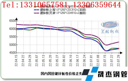 圖1 國內(nèi)主要城市1.0mm鍍鋅板行情走勢
