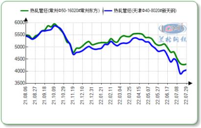 7月末,北方地區(qū)無(wú)縫鋼管廠家20#熱軋管坯出廠報(bào)價(jià)4050-4240元,20#連鑄出廠報(bào)價(jià)3940-4150元;南方地區(qū)20#熱軋出廠報(bào)價(jià)4240-4570元,北方新天鋼、南方東方兩家無(wú)縫鋼管廠家熱軋管坯價(jià)差維持在190元左右,較7月中旬相比兩者價(jià)差有所收窄。受美聯(lián)儲(chǔ)加息預(yù)期及國(guó)內(nèi)需求持續(xù)低迷影響,管坯價(jià)格大幅下跌,北方地區(qū)熱軋管坯價(jià)格跌至3970元,創(chuàng)近一年以來(lái)的新低,不過(guò)在7月27日筑底后管坯價(jià)格呈現(xiàn)小幅上揚(yáng)走勢(shì)。