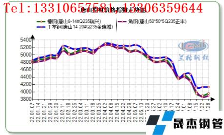 mso-font-kerning:0.0000pt;background:rgb(255,255,255);mso-shading:rgb(255,255,255);">7月份型材價(jià)格走寬幅下行行情,唐山型材價(jià)格月度降幅400-500元之間,年內(nèi)振幅1200-1400元之間。7月28日槽鋼(唐山8-14#Q235瑞興)報(bào)價(jià)3960元,年內(nèi)價(jià)格區(qū)間5280-3900元,振幅1320元,工字鋼(唐山14-20#Q235金瑞城)報(bào)價(jià)4130元,年內(nèi)價(jià)格區(qū)間5310-4130元,振幅1180元。角鋼(唐山50*50*5Q235正豐)報(bào)價(jià)3900元,年內(nèi)價(jià)格區(qū)間5260-3860元,振幅1400元。年內(nèi)高位在7月份,目前處于年內(nèi)低位。mso-font-kerning:0.0000pt;background:rgb(255,255,255);mso-shading:rgb(255,255,255);">