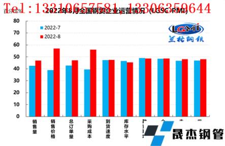 云商平臺統(tǒng)計(jì)發(fā)布的2022年8月份厚壁無縫鋼管流通業(yè)PMI總指數(shù)為48.6%,比上月上升1.9個百分點(diǎn),在收縮區(qū)間內(nèi)持續(xù)回升。從分類指數(shù)看,構(gòu)成厚壁無縫鋼管流通業(yè)