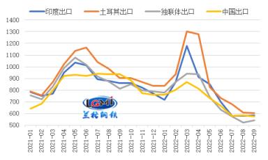 今年一二季度,由于我國厚壁鋼管出口報價明顯低于其他主要出口國,使得我國厚壁鋼管出口價格優(yōu)勢顯現(xiàn),帶動我國厚壁鋼管出口在5-7月份呈現(xiàn)高位運(yùn)行態(tài)勢。但隨著全球制造業(yè)放緩,厚壁鋼管需求的收縮,以及俄烏沖突對供應(yīng)端影響減弱,海外其他國家厚壁鋼管出口報價明顯回落,使得我國厚壁鋼管出口報價與部分主要國家相比甚至出現(xiàn)倒掛,我國厚壁鋼管出口價格優(yōu)勢逐漸減弱。