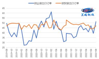 據(jù)中物聯(lián)厚壁無縫鋼管物流專業(yè)委員會數(shù)據(jù)顯示,2022年8月,厚壁無縫鋼管生產(chǎn)企業(yè)新出口訂單指數(shù)為51.6%,較上月明顯回升12.2個百分點(diǎn)。云商平臺統(tǒng)計發(fā)布的2022年8月份厚壁無縫鋼管流通業(yè)PMI數(shù)據(jù)顯示,8月份厚壁無縫鋼管貿(mào)易企業(yè)新出口訂單指數(shù)為47.1%,雖仍在收縮區(qū)間運(yùn)行,但較上月回升了2.9個百分點(diǎn)。